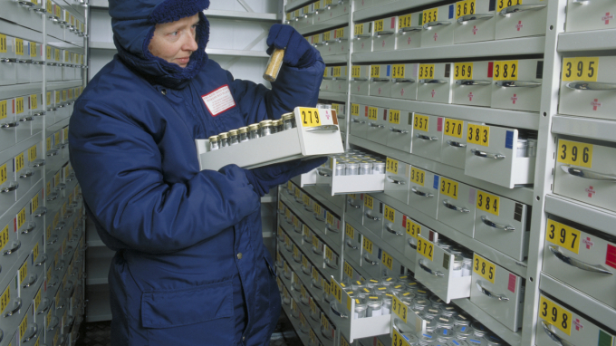 Nhà khoa học tại Ngân hàng hạt giống Thiên niên kỷ kiểm tra hạt giống trong kho. Ảnh: RBG Kew